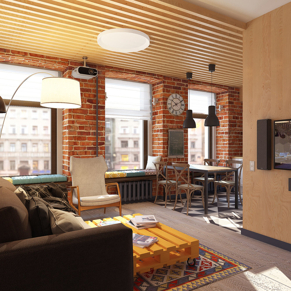 Фото из портфолио CinemaLoft. Лофт в центре Петербурга для молодой семьи – фотографии дизайна интерьеров на INMYROOM