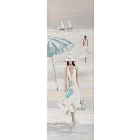 В силу оригинальности задумки художника эксклюзивная картина является оригинальным элементом декора, а силу совершенства исполнения и качества использованных материалов – еще и элитным предметом интерьера. На полотне изображен берег моря. Бело-серый фон оживляют разноцветные акценты на одежде посетителей и аксессуаров.