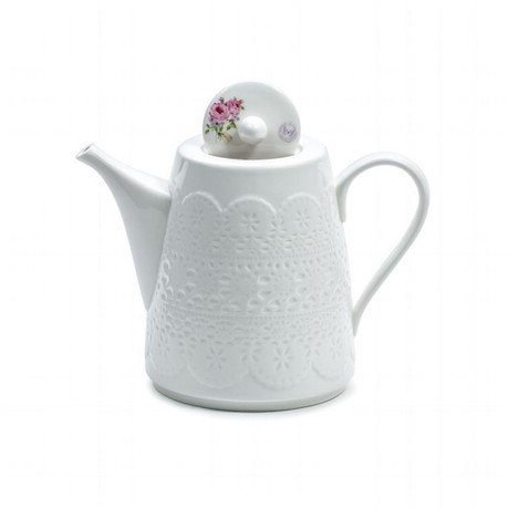 Красивый чайник для заварки украсит чайный стол, превратит чаепитие в праздничный ритуал. Крышка чайника украшена прекрасной розой, по внешней стороне эффектный ажурный рисунок. Эффектный дизайн изделия из европейской коллекции "Уютный Дом-Розы" добавит в интерьер кухни оригинальность и неповторимую "итальянскую красоту". Объем: 850 мл Материал: фарфор Производитель: Nuova R2S SpA, Италия