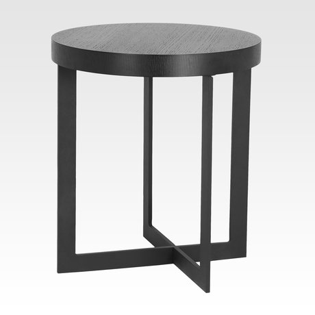 Компактный кофейный столик с круглой столешницей и крестообразной металлической опорой. Черное матовое покрытие придают моделе красоту и универсальность.