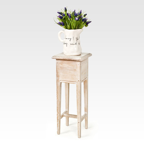 Небольшой кофейный столик изготовлен из светлой древесины дуба и выбелен с помощью декоративной техники патинирования. Подобный предмет мебели сделает уютным любой интерьер.