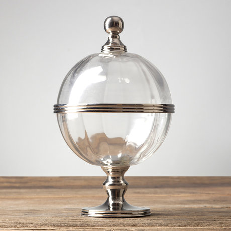 Шарообразная чаша Grace заставляет обратить на себя внимание. Две части посуды, крышка и основание, изготовлены из полупрозрачного стекла. Целостность формы, сочетание стеклянной поверхности с хромированными металлическими элементами.