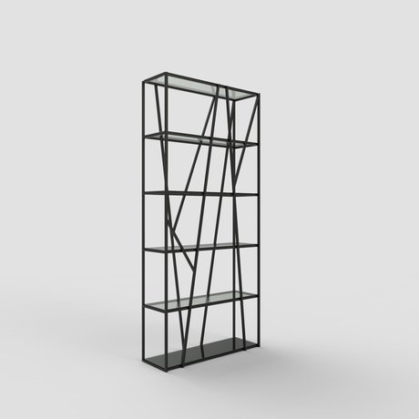 Стеллаж "Olivia" черный с прозрачным стеклом (2200х1100х300)