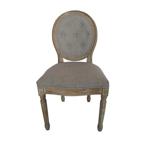 Классический стул выполнен в очень сдержанном дизайне. Каркас из натурального дерева сохраняет его увет и фактуру. Обивка из сегой ткани. Круглая спинка украшена стежкой с пуговицами в тон.