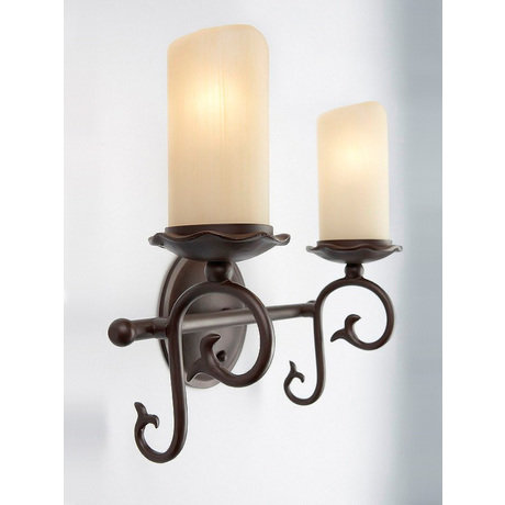 Настенное бра в двумя плафонами в виде оплывших свечей и основанием из кованного металла напоминает элемент оформления средневековых замков или уютных шале. Отличный вариант для декорирования загородного дома.