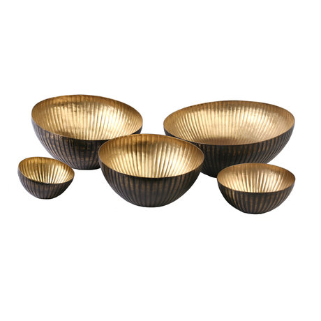 Ребристая наружная поверхность с благородной бронзовой патиной украшена регулярными параллельными линиями, внутренняя поверхность мерцает матовом золотом.