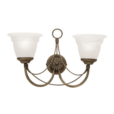 Бра с двумя плафонами в стиле Прованс из кованного металла с классическими элементами: симметричные плафоны соединены изящными дугами и соединены в центре классической розеткой.