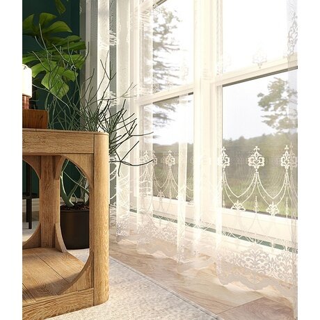 В комплект входит одно полотно шириной 500 см, высотой 280 см, со шторной лентой 6 см. Тюль «Николь» в основе имеет сетку грек с богатой вышивкой из белых нитей в нижней части тюля и легкики купонами из вышивки по всему полотну. По нижнему краю расположен богатый купон с классическим узором в дворцовом стиле, сам край - ажурный. Такой тюль станет прекрасным дополнением к классическому интерьеру.При помощи шторной ленты для крючков легко регулировать ширину портьеры и создавать аккуратные равномерные складки, подгиб шторной ленты возможно использовать как кулиску для круглых карнизов диаметром 16, 19, 25 мм.Ткань отличается высокой износостойкостью, хорошо драпируется, защищает от солнечных лучей, не выгорает, при правильном уходе сохраняет форму и первоначальный внешний вид.Уход за тканью: Разрешена бережная стирка при 30 градусах, глажка утюгом не выше 110 градусов. Внимание! Возможно незначительное отличие цвета от изображения на мониторе ввиду различных настроек и цветопередачи монитора и фототех