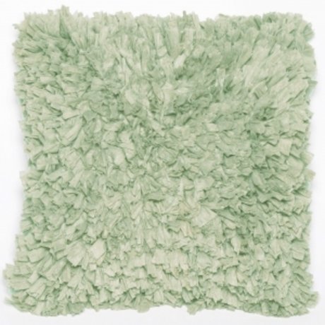 Подушка мятного цвета в стиле французский шик выполнена из небольших кусочков ткани, напоминающих россыпь лепестков.