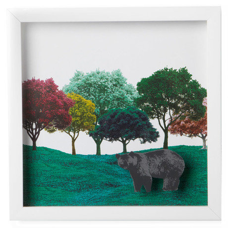 Вдохновившись старинными пленками 19-го века, дизайнеры создали собственный сказочный лес, который может украсить любую комнату. Специальный метод окрашивания силуэта и стекло создают эффект объема. И такой замечательный мишка подойдет и для гостиной, и для коридора, и, конечно же, для детской.
