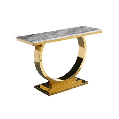 Стол-консоль Лира. Столешница: микрокристаллический камень, цвет светло-серый. Основание: нержавеющая сталь, золото120х40х76 см