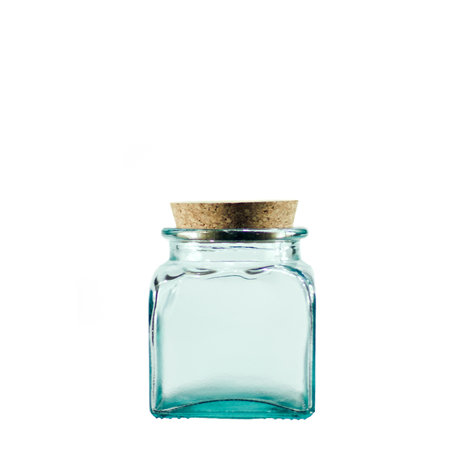 Банка кубической формы имеет в качестве крышки пробку. Удобно хранить специи, зёрна и даже варенье. Декоративный и очень практичный аксессуар может быть центровым украшением полки.