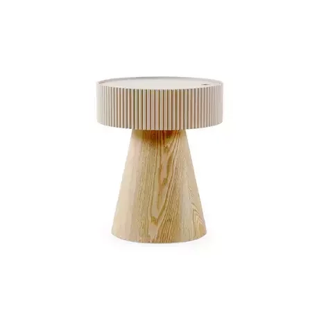 Журнальный столик Beecup сочетает в себе практичность и продуманную детализацию. Скульптурный столик напоминает башню с конусовидным основанием, красота которого подчеркивается естественной текстурой древесины. Ясеневый шпон поддерживает благородный внешний вид. Прочный, износостойкий, не требует ухода. Гармонично сочетается с другими материалами. Добавляет необычности силуэту вертикальное рифление на верхней части столика. Место под столешницей можно использовать для хранения небольших вещей. Трендовый столик Beecup освежит ваш интерьер, внесет новизны и привлекательности в гостиную, спальню, прихожую, творческое и рабочее пространство.