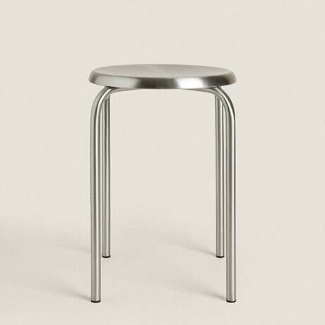 Табурет из нержавеющей стали на четырех ножках. Они имеют нескользящие шипы, что делает их подходящими для всех типов напольных покрытий.