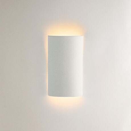 Полуцилиндрический настенный светильник из керамогранита бежевого цвета.