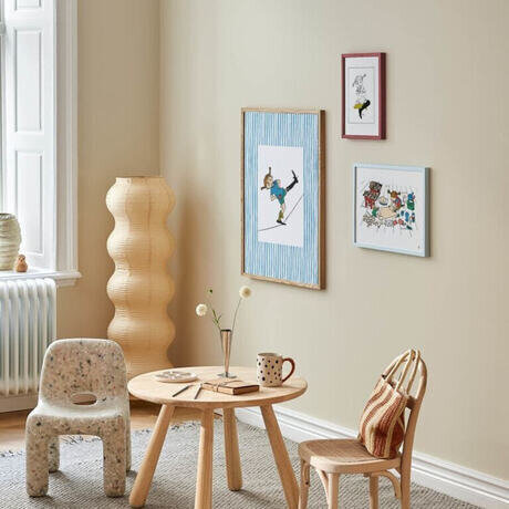 Пеппи Длинныйчулок — вечный персонаж, созданный шведской писательницей Астрид Линдгрен. Обладая добротой, оранжевыми косами, веснушчатым лицом и недюжинной силой, Пеппи ведет полную приключений жизнь на вилле Кунтербунт в сопровождении своего коня Маленького дяди и обезьяны мистера Нильссона. С 1945 года Пеппи покорила сердца читателей всего мира и стала любимым символом свободы, силы и необычности. Изображения проиллюстрировала Ингрид Ванг Найман. Иллюстрация Пеппи Длинныйчулок, пекущейся на полу, со своей обезьянкой мистером Нильссоном. Мотив размещен на бежевом фоне.
