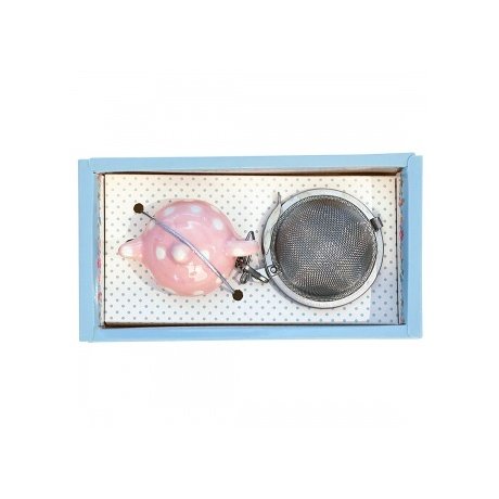Чайное ситечко из нержавеющей стали с розовым фарфоровым чайничком в горошек от GreenGate.