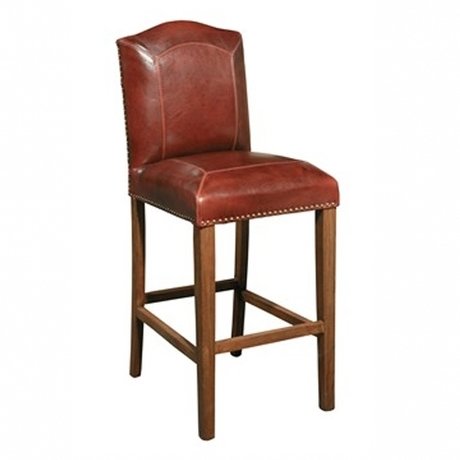 Классический американский барный стул. Каркас стула выполнен из массива дуба, а сиденье и спинка обиты натуральной кожей с использованием декоративных гвоздей.