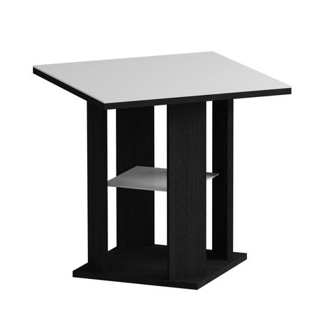 Комплектация - С полками, Вес - 11, Высота - 50, Глубина - 50, Ширина - 50, Тип - Журнальный, Цвет каркаса - Черный, Цвет столешницы - Белый, Материал каркаса - ЛДСП, Материал столешницы - Стекло, Форма - Квадратный.