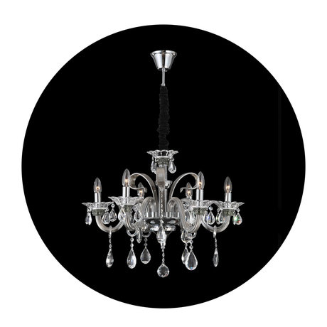 Назначение светильника: для комнаты, Стиль светильника: модерн, Тип: потолочная, Материал светильника: металл, Диаметр: 520 мм, Высота: 1155 мм, Количество ламп: 6 шт., Тип лампы: накаливания, Мощность: 240 Вт, Патрон: Е14, Цвет арматуры: серебристый