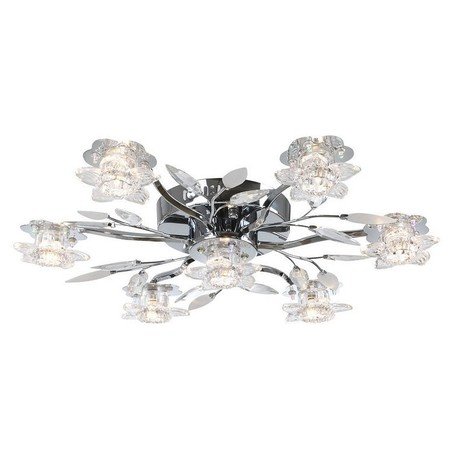 Назначение светильника: для гостиной, Стиль светильника: модерн, Тип: потолочная, Материал светильника: металл, хрусталь, Диаметр: 600 мм, Высота: 130 мм, Количество ламп: 7 шт, Тип лампы: галогенные и светодиодные, Мощность: 20 Вт, Патрон: G4, Цвет арматуры: хром