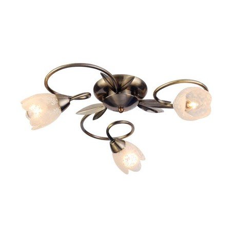 Назначение светильника: для гостиной, Стиль светильника: флористика, Материал светильника: металл, стекло, Длина (мм): 520, Ширина: 520 мм, Высота: 260 мм, Количество ламп: 3 шт, Тип лампы: накаливания, Мощность: 60 Вт, Патрон: Е14, Цвет арматуры: античная бронза