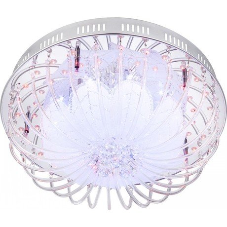 Назначение светильника: для гостиной, Стиль светильника: модерн, Тип: потолочная, Материал светильника: металл, стекло, хрусталь, Диаметр: 480 мм, Высота: 210 мм, Количество ламп: 10 шт, Тип лампы: галогенные и светодиодные, Мощность: 20 Вт, Патрон: G4, Цвет арматуры: хром/сиреневый
