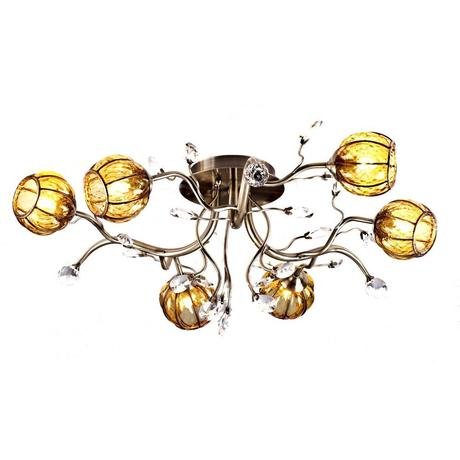 Назначение светильника: для комнаты, Стиль светильника: модерн, Материал светильника: металл, Ширина: 550, Диаметр: 550, Высота: 230, Количество ламп: 6 шт, Тип лампы: галогенная, Мощность: 40 Вт, Патрон: G9, Цвет арматуры: бронза