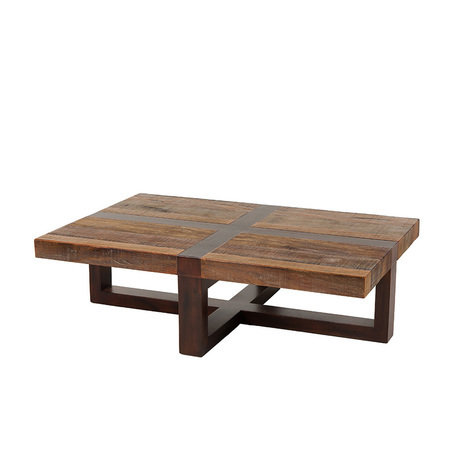 Кофейный стол Bryan. Геометричная форма массивной столешницы подчеркивает всю красоту фактуры антикварной древесины перобы розовой и гуанакасте. Перекрещенные ножкииз массива грецкого ореха добавляют архитектуре предмета большей графичности.