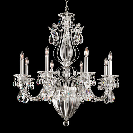 Люстра из коллекции Bagatelle. Плафон из прозрачного хрусталя. Цвет арматуры - полированное золото, хрустальные подвески Swarovski Elements цвета Gold Shadow. Есть возможность регулировать высоту люстры за счет звеньев цепи.