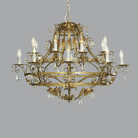 Металлическая арматура люстры золотого цвета. Украшена прозрачными хрустальными подвесками Swarovski. Дизайн ламп выполнен в виде свечей в подсвечниках. Высоту светильника можно регулировать за счет звеньев цепи. Дизайн: Karen Lenz.