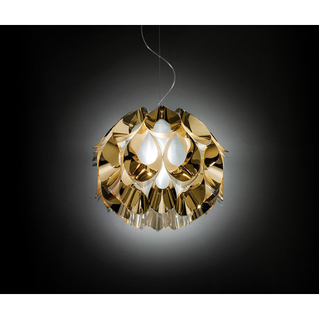 Подвесной светильник FLORA SMALL с оригинальным дизайном. Плафон медного цвета выполнен из необычного материала под названием COPPERFLEX. Это материал, получаемый в процессе металлизации поликарбоната. В результате этого процесса появляется инновационный материал с абсолютно отражающей зеркальной поверхностью. При этом материалы сохраняют гибкость – важнейшее качество всех листовых материалов, используемых SLAMP. Высота светильника регулируется до 140 см.