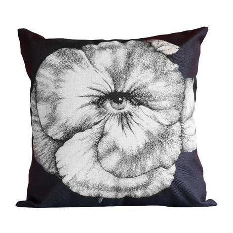 На этой чёрной подушке изображен необычный цветок, с глазом в центре. Вам знаком этот взгляд? Конечно же, это глаза прекрасной Лины Кавальери — музы известного итальянского дизайнера Пьеро Форназетти (Piero Fornasetti). Несомненно, эта подушка станет эксклюзивным украшением вашего стильного интерьера или оригинальным подарком.