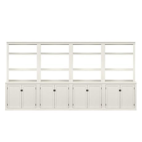 Включает в себя: четыре отделения с дверцами, четыре открытых книжных шкафчика.