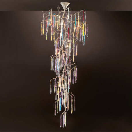 Потолочный светильник из коллекции Glamour на арматуре серебряного цвета. Дизайн выполнен в виде дерева со сплетением ветвей. Многоуровневые сверкающие длинные подвески-капли из муранского стекла на ветвях. Цвет стекла 01 в соответствии с палитрой. Возможны другие варианты по цвету стекла и покрытию металла. Идеальные пропорции и изящные линии сочетают в себе классические традиции и новаторство нашего времени. Все изделия Serip изготавливаются вручную, имеют органичные формы и цвета, вливаются в интерьер, делая его утонченнее и ярче.