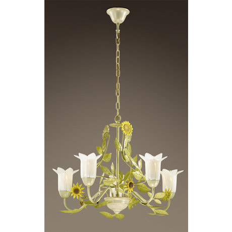Итальянская люстра для гостиной выполнена в стиле кантри и отличается тёплой цветовой гаммой и деревенскими мотивами. Плафоны в форме белых цветков и оплетённая подсолнухами арматура подчёркивают принадлежность модели к коллекции SUNFLOWER. Площадь освещения подвесной люстры составляет 12 кв. м. Количество ламп 5. Мощность лампы, W40. Общая мощность, W200. Площадь освещения, м2 11.1. Тип цоколя E14. Тип лампочки (основной) Накаливания. Напряжение, V220.