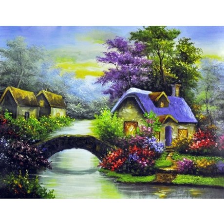 "Волшебный мир" – это картина с изображением сказочной местности. Разноцветные деревья и дома, чудный мостик через речку, миловидный рисунок и сочетание яркой цветовой палитры, всё это станет очаровательным дополнением интерьера любой вашей комнаты.