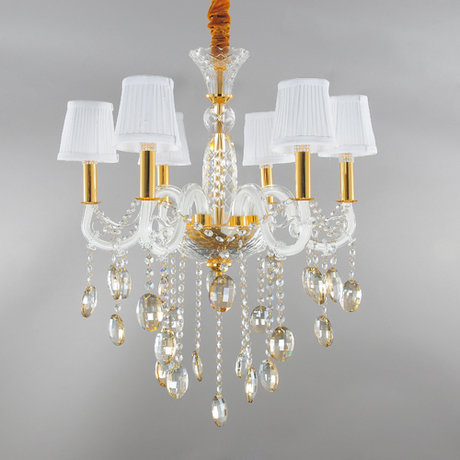 Производитель: Elvan; Коллекция: 8006; Количество ламп: 6; Мощность лампы, W: 40; Общая мощность, W: 240; Площадь освещения, м2: 13,33; Тип лампочки (основной): Накаливания; Тип цоколя: E14; Напряжение, V: 220; Степень защиты, IP: 20; Виды материалов: Текстильные; Материал арматуры: Металл; Материал плафонов: Ткань; Цвет: Белый; Цвет арматуры: Золото; Цвет плафонов: Белый; Место установки: На потолок; Стиль: Арт-деко; Форма плафона: Конусный; Интерьер: Для спальни; Гарантия: 18 месяцев; Остаток поставщика: 7; Новинка: Нет; Акция: false;