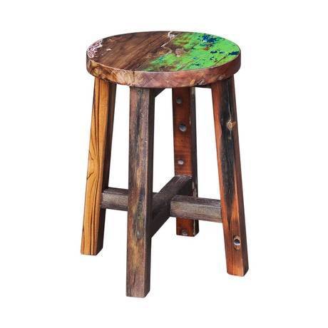 Табурет, выполненный из массива древесины старого рыбацкого судна, такой как: тик, махогон, суар, с сохранением оригинальной многослойной окраски.