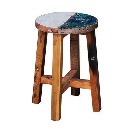 Табурет, выполненный из массива древесины старого рыбацкого судна, такой как: тик, махогон, суар, с сохранением оригинальной многослойной окраски.