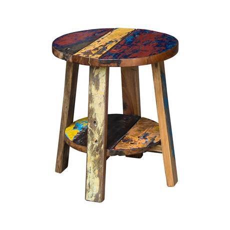 Тумба/табурет, выполненный из массива древесины старого рыбацкого судна, такой как: тик, махогон, суар, с сохранением оригинальной многослойной окраски.