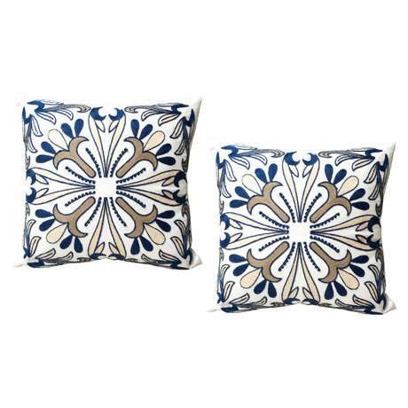 Подушка диванная тканевая с вышивкой, набор 2 шт, цвет бежевый и синий с золотом. Наполнитель - синтепон. Вес - 0.725 кг