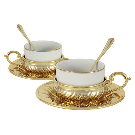 Чайный набор на 2 персоны с отделкой под золото в подарочной коробке