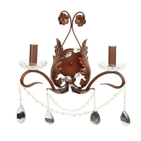Бра 2-х рожковое на металлической арматуре бордово-красного цвета. Декор: хрустальные прозрачные чашечки и бусы с кулонами.