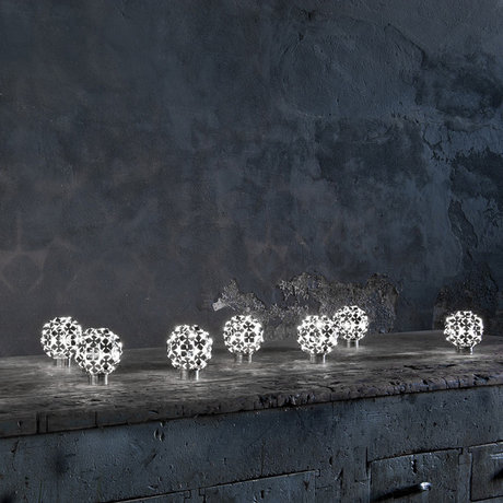 Настольная лампа ORTEN' ZIA из множества металлических четырехлистников серебряного цвета. Дизайн: BRUNO RAINALDI. Количество лампочек: 1. Мощность: 1 x 0.3 Вт. Тип лампы: LED.