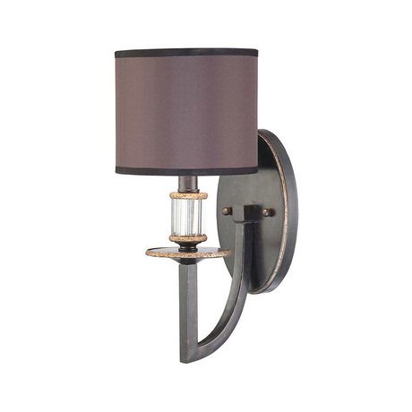 Бра однорожковое на металлической арматуре. Текстильный абажур коричневого цвета. Цвет арматуры: бронзовый с золотой патиной. Количество лампочек: 2. Мощность: 2 x 100 Вт. Тип лампы: Накаливания, E14.