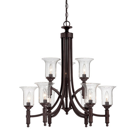 Люстра 9-ти рожковая Trudy на металлической арматуре бронзового цвета. Плафоны выполнены из прозрачного стекла. Высота светильника регулируется за счет звеньев цепи. Дизайн: Savoy House Team. Количество лампочек: 9. Мощность: 9 x 60 Вт. Тип лампы: Накаливания, E14.