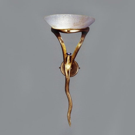 Настенный светильник из коллекции COBRA. Арматура выполнена из литого алюминия. Покрытие - золотая фольга под старину. Плафон выполнен из стекла «этрусское скаво». Декор: хрусталь Swarovski STRASS на арматуре. Количество лампочек: 1. Мощность: 1 x 250 Вт. Тип лампы: Накаливания, E14.