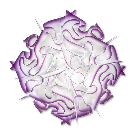 Потолочный светильник с оригинальным дизайном. Плафон белого цвета с фиолетовыми элементами выполнен из необычного материала под названием OPALFLEX. Это эксклюзивный запатентованный материал, получаемый путем смешивания технополимеров и стеклянных волокон. Этот материал придает светильникам прозрачность стекла, гарантируя в то же время прочность и универсальность. Светильник может использоваться как настенный. Количество лампочек: 2. Мощность: 2 x 20 Вт. Тип лампы: Накаливания, E27.