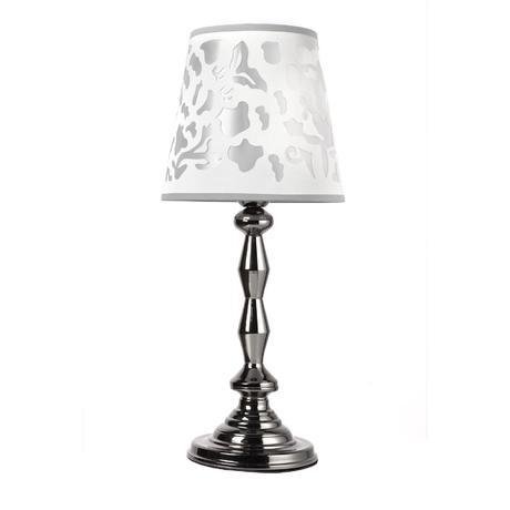 Настольная лампа: серого цвета тканевый абажур размер диаметр 22 см, высота 20 см; основание хромированное железо; предназначена для использования со светодиодными лампами Е27-1 лампа (лампа не включена в комплект)